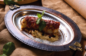 Osmanlı mutfağından kuzu,dana ve tavuk domates sos ve patlıcan beğendi ile / From Ottoman Cuisine Ground Beef, lamb and chichen wrap on eggplant pure served with tomato sauce