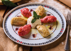 Gurze manty served with strainer yoghurt