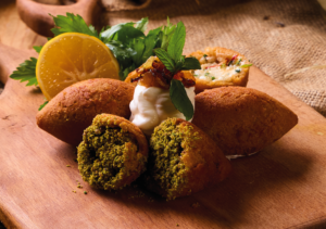 Sebzeli ve kıymalı içli köfte, süzme yogurt ile / Vegetarian and ground meat versions